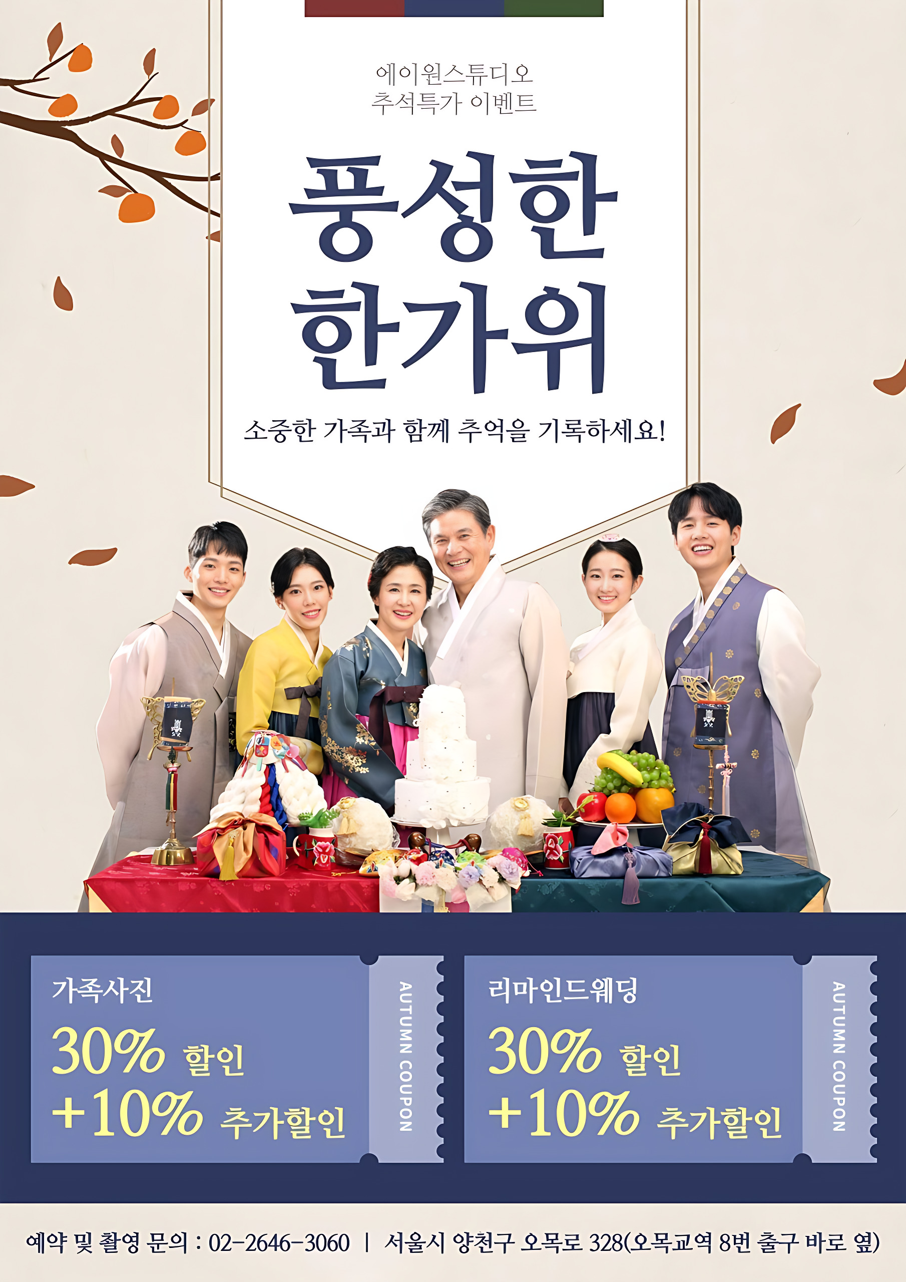 풍성한 한가위를 맞아, 소중한 가족과 함께하는 순간을 특별하게 기록하세요!
